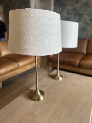 Pair of Modern White Bedside Lamps with Brass-Coloured Metal Bases